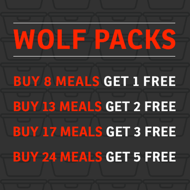 Baked Chicken, White Rice, Black Beans, Corn, Mexican Shredded Cheese, Peppers, Onions & Wolf Sauce- From $10.99